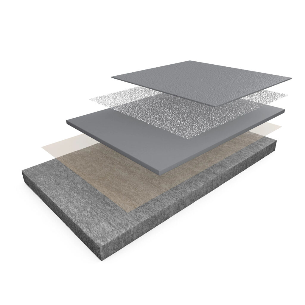 Ένα αρωματικό, τσιμεντοειδές σύστημα ουρεθάνης από 100% στερεά, αναμεμειγμένο με διαβαθμισμένο πυρίτιο και λεπτά πληρωτικά υλικά, εφαρμοσμένα ανά 1/8 της ίντσας για να παράγουν ένα αυτοεπιπεδούμενο ματ φινίρισμα.