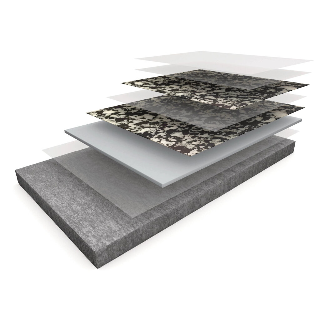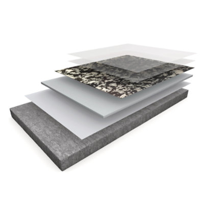 Ένα 100% στερεά, άοσμο, φυσικό σύστημα χαλαζία που χρησιμοποιεί αδρανή πυριτόλιθου ουδέτερου χρώματος με χρωματισμένες επιστρώσεις.