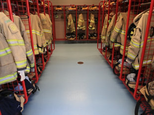 Τα δάπεδα στους χώρους του μηχανοστασίου, στους χώρους συντήρησης οχημάτων, στα αποδυτήρια, στα γραφεία και σε άλλους χώρους εγκαταστάσεων πυρασφάλειας και δημόσιας ασφάλειας πρέπει να αντέχουν στην κυκλοφορία όλο το 24ωρο, 7 ημέρες την εβδομάδα. Αυτές οι εργασίες υψηλής κυκλοφορίας απαιτούν δάπεδα βαρέως τύπου που να έχουν τόσο καλή εμφάνιση όσο και απόδοση.